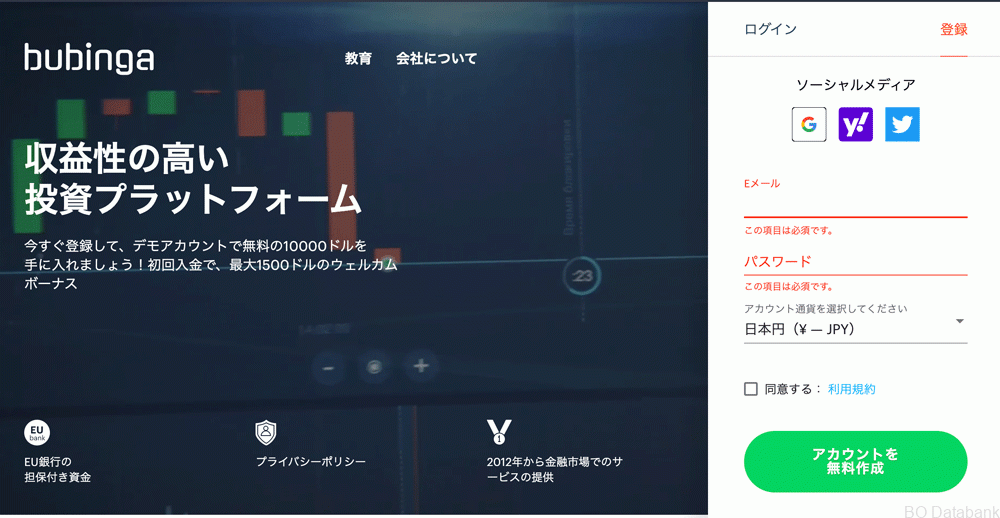 ブビンガバイナリーは高機能チャートツールが利用でき、後発ながら急速に人気が出ている業者です。